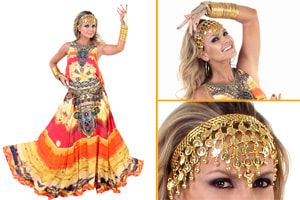 Ela optou por uma saia e um top, que foram pintados à mão. Segundo o stylist Thidy Alvis, a apresentadora usa em cada braço 50 pulseiras douradas e, nas mãos, luvas de metal.