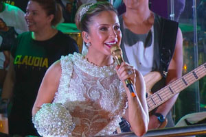Cláudia Leitte continua arrebentando no Carnaval de Salvador. A cantora, vestida de noiva para o último dia de festa, comentou sua roupa para o SBT Folia: "Meu tema de carnaval é o que você faria se fosse o último dia da sua vida (...) no último dia, eu viria de noiva porque eu me casaria de novo com meu marido e a gente ia viver uma eterna lua de mel".