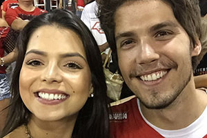 Emílio Eric, o Beto de Chiquititas, e Rodrigo Dorado, o Dinho de Cúmplices de Um Resgate, aproveitaram a noite de sábado, 6 de fevereiro, para curtir a folia ao lado das namoradas. Os atores estiveram em um camarote, no Carnaval de São Paulo.