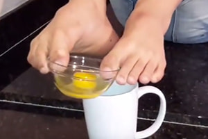 Para mostrar como é a sua rotina, o Samuel fez um canal no Youtube e, no primeiro vídeo, ele ensina a fazer um bolo de caneca usando os pés.