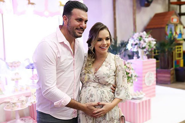 A cantora Thaeme e o marido, Fábio Elias, no chá de bebê da pequena Liz