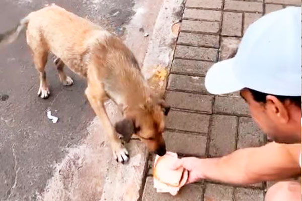O cão circulava em frente ao hotel onde a dupla estava hospedada, no interior do Paraná, e recebeu um lanche especial