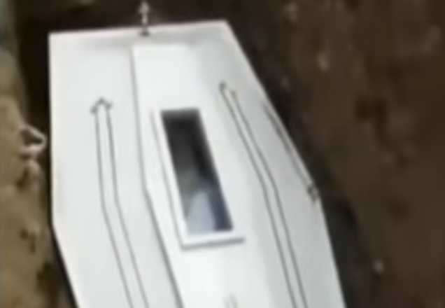 A pessoa estava sendo enterrada, com a presença da família e de um padre, quando parte da sua mão se aproxima do vidro do caixão, quase como um aceno. Esse acontecimento sinistro aconteceu durante a leitura da seguinte passagem da Bíblia: "Deus disse no livro de João:`Eu sou a ressurreição e a vida; quem crê em mim, ainda que esteja morto, viverá".