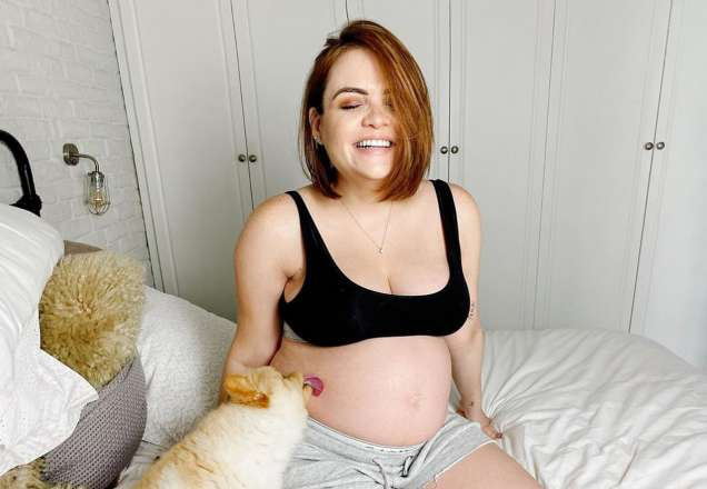 Grávida de primeira viagem, Karol tem 32 anos e é casada com Arthur Pezzi. Ela descobriu a espera do bebê ao sair de uma sessão de terapia, quando fez um teste de farmácia em 2019.