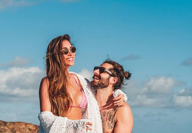 Trocando carinhos em clima de romance, a médica e o DJ curtiram o dia ensolarado da Praia dos Carneiros, no Pernambuco. "Dias em Pernambuco... Amo vocês e amo a energia desse lugar! Te amo Nordeste!", declarou ela.