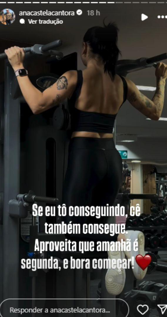 "Essa sou eu após sete meses treinando. Ainda tenho muito a melhorar, mas estou feliz com essa mudança. Se eu estou conseguindo, você também consegue. Aproveita que amanhã é segunda e vamos começar", declarou, incentivando seus seguidores.