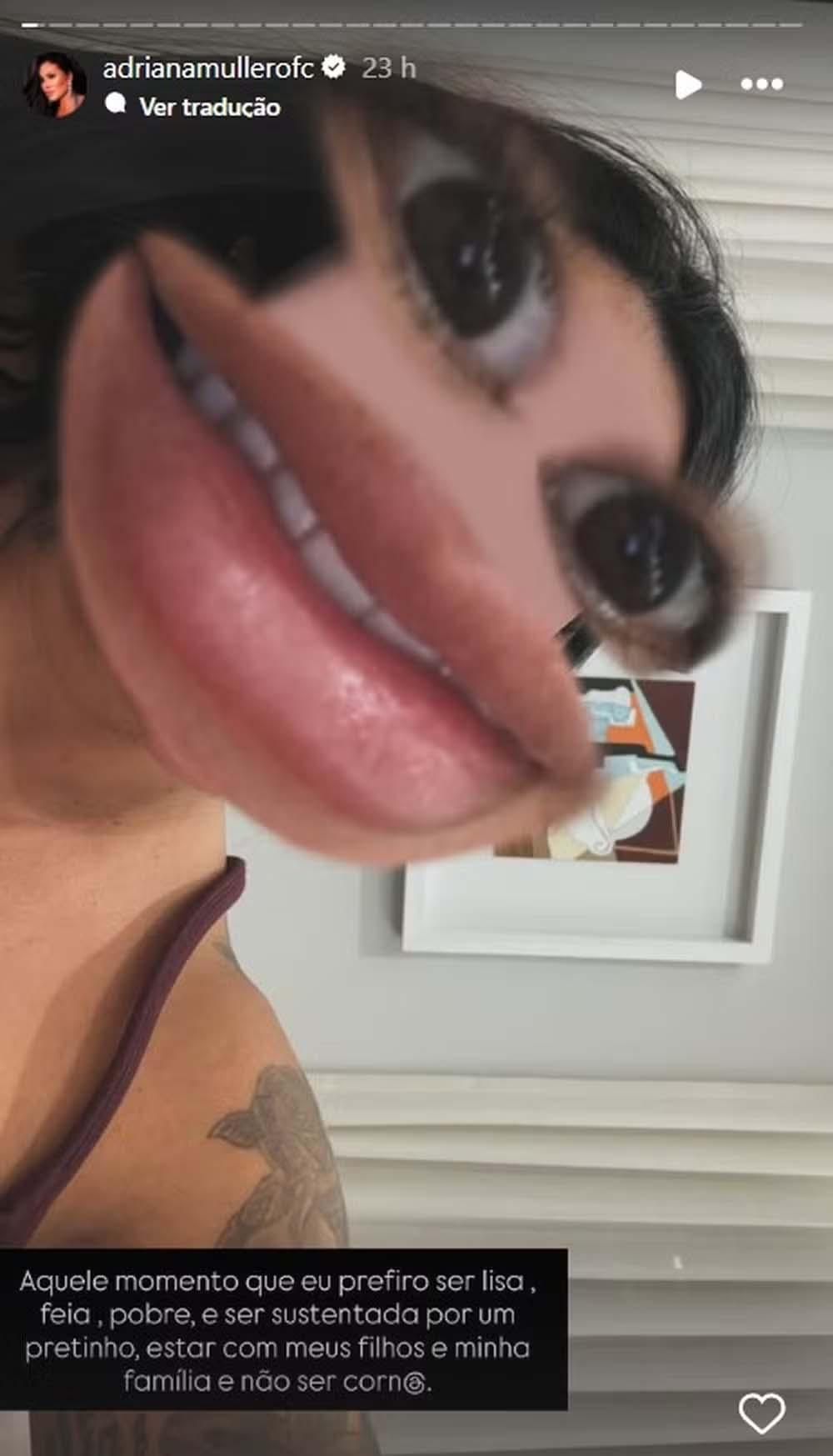 "Prefiro ser lisa, feia, pobre e ser sustentada por um pretinho, estar com meus filhos e minha família, do que ser corna". publicou em seus Stories, enfurecendo muitos fãs.