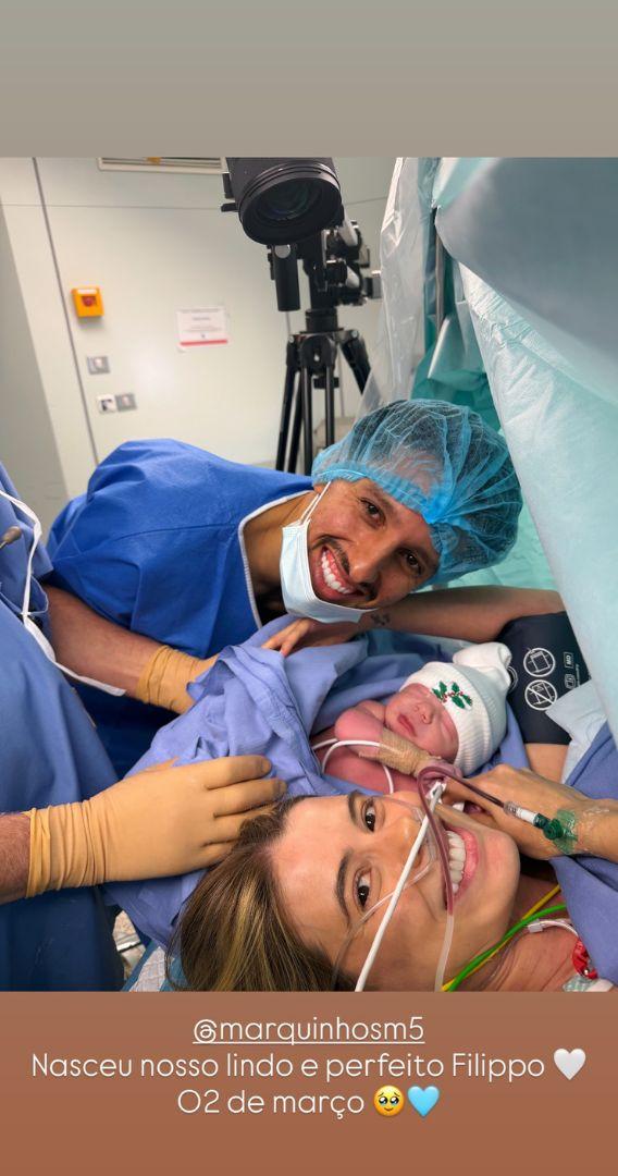 "Nasceu nosso lindo e perfeito Filippo. 02 de março", escreveu Carol ao compartilhar a primeira foto ao lado do marido e do recém-nascido. Marquinhos repostou o registro em seu perfil, celebrando a chegada do caçula. Juntos há mais de 10 anos, eles também são pais de Eduarda, Enrico e Martina.