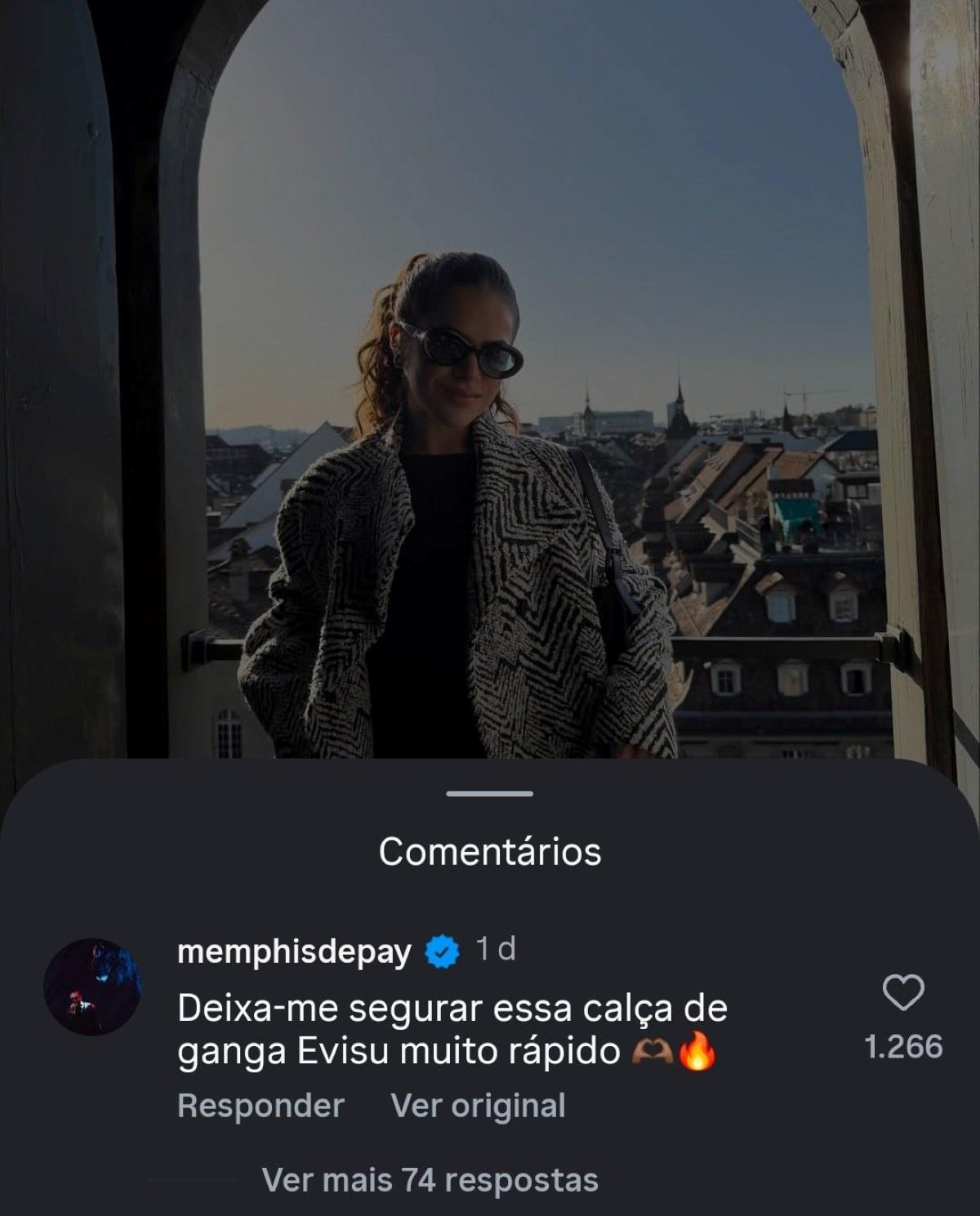 "Deixa eu segurar essa calça jeans da Evisu rapidinho", escreveu o atacante holandês, completando a mensagem com emojis de foguinnho e sinal de sorte.