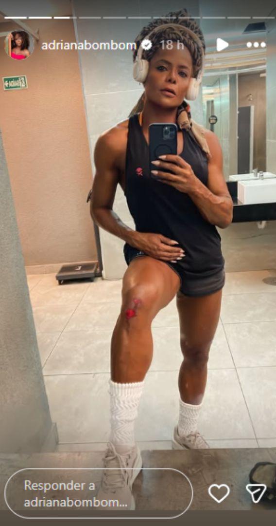 Horas depois, a apresentadora voltou a aparecer nas redes e mostrou que não deixou o imprevisto atrapalhar a rotina: mesmo com o joelho ralado, ela seguiu para a academia e incentivou os seguidores: "Bora treinar assim mesmo".