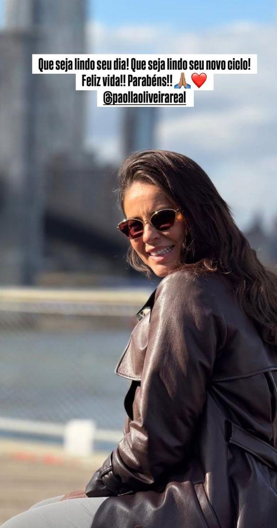 Através dos Stories no Instagram, o cantor compartilhou uma foto da atriz sorridente e deixou uma mensagem carinhosa para marcar o início de um novo ciclo. "Que seja lindo seu dia! Que seja lindo seu novo ciclo! Feliz vida!! Parabéns!!", escreveu o sambista, acompanhado de um emoji de coração.