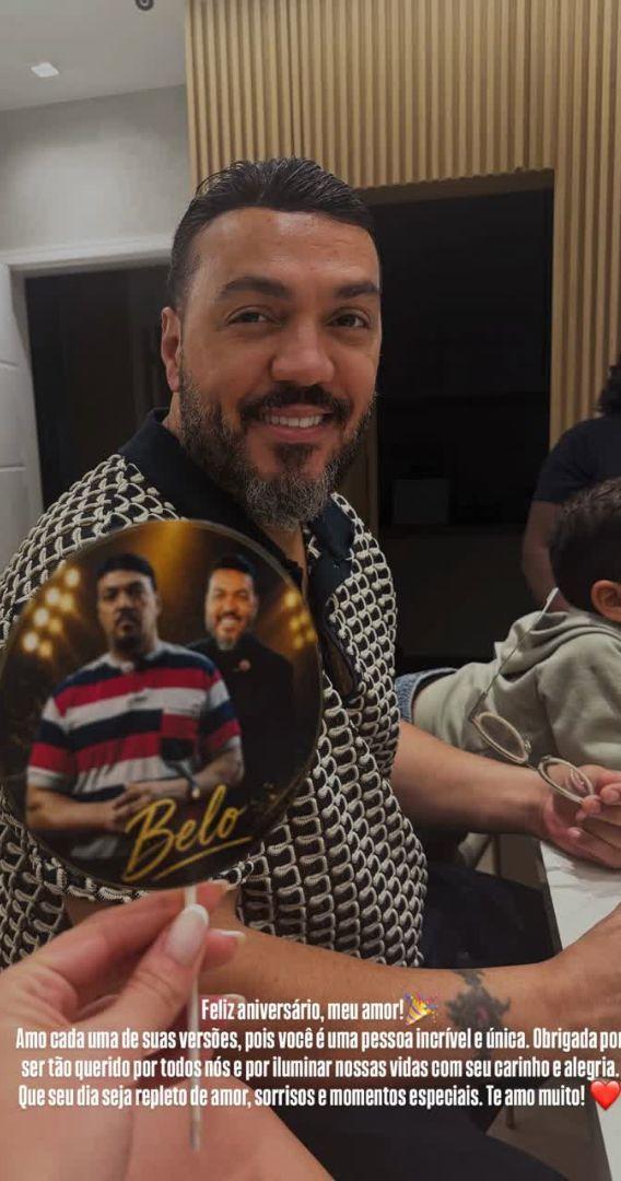 O cantor Belo completou 52 anos nesta quarta-feira (22) e recebeu uma declaração especial da namorada, Rayane Figliuzzi.
