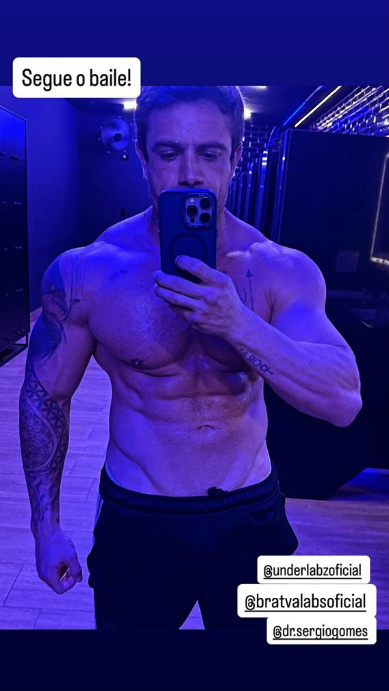 Rafael Cardoso movimentou as redes sociais nesta quinta-feira (30), ao publicar uma selfie sem camisa e exibir o shape musculoso. No registro, o ator apareceu diante do espelho de um vestiário, com ombros marcados, braços volumosos e abdômen trincado, e resumiu a postagem com a frase: "Segue o baile".