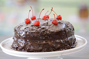 Pré aqueça o forno a 180 graus. Unte a forma com manteiga e farinha. Coloque na batedeira o açúcar e o chocolate em pó peneirados. Junte os ovos e o óleo e bata tudo na velocidade baixa. Bata os ingredientes até misturar. Aumente a velocidade e bata por mais alguns minutos. Peneire a farinha em um bowl. Alternando a farinha e o café bata apenas para misturar. Por último, adicione o fermento. Transfira a massa para a forma desejada e leve ao forno pré aquecido por 30 minutos, ou até que o palito saia limpo. Retire do forno e espere esfriar por 15 minutos para desenformar. Recheie com o brigadeiro, cubra com o ganache, povilhe cacau em pó, e coloque as cerejas da forma que desejar.