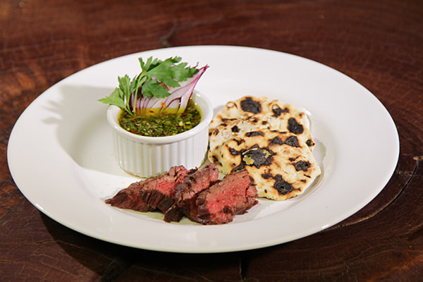 Fraldinha limpar e cortar em steaks de 200g e grelhar por 4 minutos cada lado. Naan: Juntar os secos, acrescentar o iogurte e depois a manteiga. Se preciso corrigir com o leite. Chimichurri: -picar a cebola e o alho, a salinha e cebolinha separados, depois juntar todos na tábua e macerar. Colocar num pote e acrescentar o sal, limão E vinagre, Pimenta calabresa e orégano. Por fim o azeite e misturar tudo.