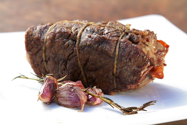 Limpar a gordura do contra, abrir para rechear com Parma, queijo e azeitonas sem caroço. Selar a carne na frigideira com alho, alecrim, azeite e manteiga. Dar o ponto na churrasqueira a bafo, 20/30 minutos a 200°C.