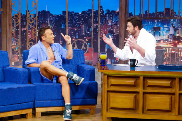 O convidado relembra ainda uma história que viveu por não poder ingerir coquetéis alcoólicos. “Se eu tomar um drink preciso sair correndo para ir no banheiro. (Certa vez) a privada não tinha água e, na hora em que eu estava saindo do banheiro, o menino que eu estava ficando entrou. Ele nunca mais quis ficar comigo”, recorda rindo.