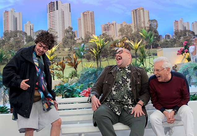 Mas o bate-papo não ficou só entre os dois. Sangue (Marlei Cevada) surgiu e, inicialmente, ficou enciumado, achando que era um novo personagem do humorístico. Depois, quando Cazalbé explicou quem era o convidado, o ‘tiozão’ ficou felizão! “Mentira! O filho da Patricia já está desse tamanho! Como o tempo passa, já tem até bigode!”, exclamou o sangue bom.