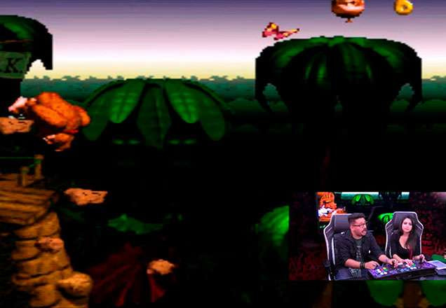 Teve tempo também para soltar o dedo no play. A dupla jogou Donkey Kong no fliperama do estúdio. Show de bola!