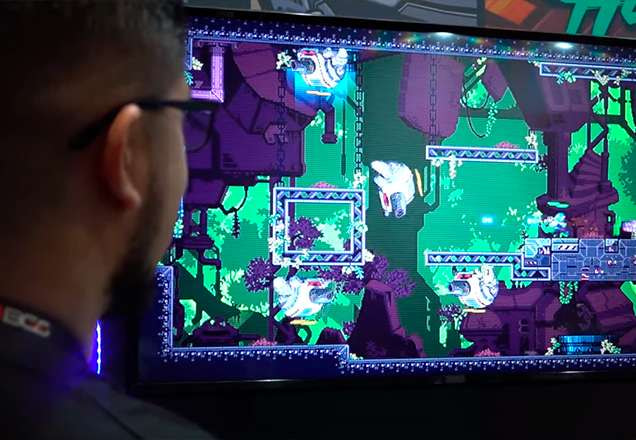 No local, Cris conversou com Henrique, desenvolvedor do jogo Dolmen, um game em produção desde 2016. O jogo traz a história de William, que despertou de uma câmara criogênica em um mundo hostil após uma viagem espacial.
