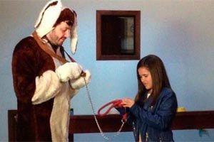 Danilo Gentili gravou uma participação no programa Mundo Pet, apresentado por Carla Fioroni e Maisa Silva. Ao lado da apresentadora mirim, o humorista encarnou um cachorro com direito a coleira e tudo. Resta saber se ele topou provar a ração!