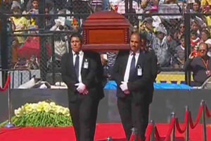 O corpo do ator Roberto Bolaños chegou ao Estádio Azteca, na Cidade do México, no final da tarde deste domingo, 30 de novembro. A multidão que aguardava no local ovacionou Florinda Meza, esposa do comediante, além dos filhos e netos. Acompanhe com vídeos e imagens:
