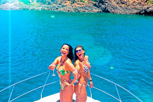 Helen Ganzarolli e Lívia Andrade já estão na capital baiana para cobrir tudo o que acontece no SBT Folia 2015. Mas com um dia tão bonito e ensolarado, as musas do SBT não poderiam deixar de "divar". Elas postaram uma foto nas redes sociais em cima de uma lancha e tomando champagne.